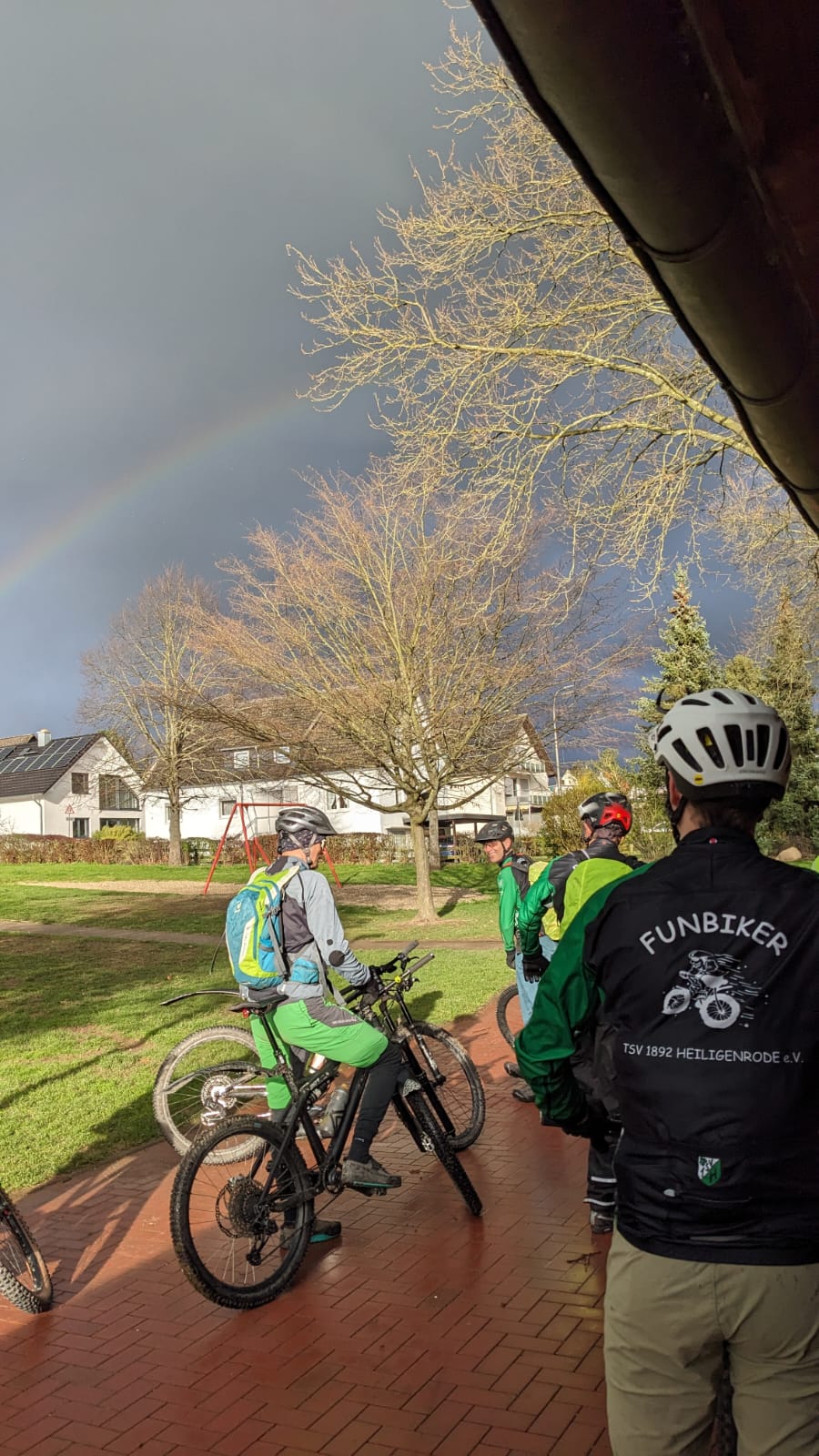 Der zurückliegende Monat machte seinem Namen alle Ehre und Petrus servierte feinstes Aprilwetter. So erfolgte der Saisonstart der Mountainbike-Sparte Funbiker dieses Jahr bei Regenwetter. Pünktlich am ersten Dienstag nach der Zeitumstellung trotzten 13 Funbiker den widrigen Umständen und trafen sich zur Saisoneröffnungstour. Die von Klaus Schmidt zusammengestellte Tour führte über den Mühlenberg und durch das Tal der Nieste, um nach einer Runde um Escherode und Nieste den Fluss ein zweites Mal zu queren und nach einem letzten Anstieg bis zur Einkehr in Kaufungen hinabzufahren. Zum gemütlichen Ausklang gesellten sich dann noch weitere Funbiker hinzu, die durch Verletzungen die Saisoneröffnungstour verpassten. In der Sommersaison treffen sich die Funbiker für gemeinsame Touren nun wieder jeden Dienstag und Donnerstag.