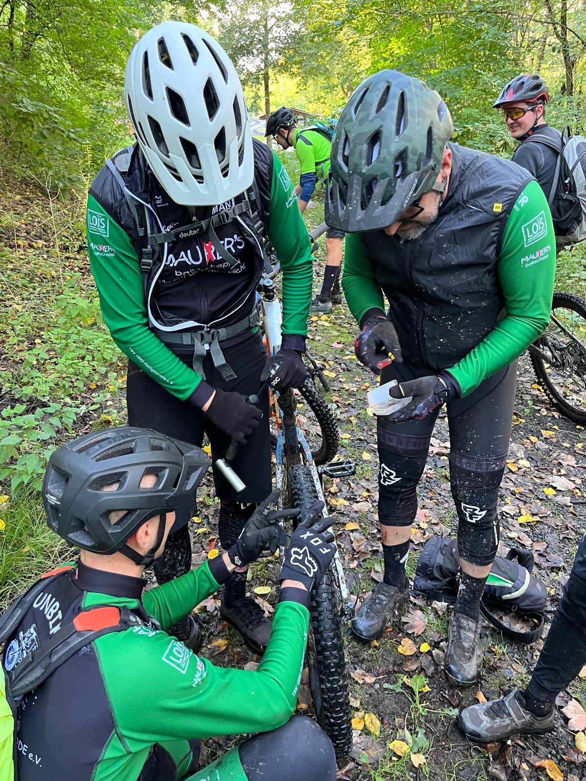 Am Samstag, den 28.09.24, trafen sich die Funbiker der Radsportabteilung zur traditionellen Saisonabschluss-Tour. Zum Ende des Sommers wird dabei jeweils eine tagesfüllende, längere Strecke in Angriff genommen. In diesem Jahr nahmen sich Andreas Vogel und Andreas Tügel der organisatorischen Aufgabe an und – wie jetzt nachträglich festgestellt werden kann – erfüllten sie genau auf die Art und Weise, wie der ihnen vorauseilende Ruf es erwarten ließ. Und so machten sich also 11 Funbiker auf den Weg in Richtung Naturpark Münden. Der Flurfunk sollte Recht behalten. Die gewählte Strecke ist als „4-Täler-Tour“ berüchtigt und in jeder Hinsicht anspruchsvoll. Neben den Eckdaten von knapp 60km und 1400hm stellt die Befahrung der Täler eine technische Herausforderung dar, da das Gelände teils steil und ausgesetzt ist. Die mehrfachen Querungen, der aufgrund des herbstlichen Wetters der Vortage gut mit Wasser gefüllten Bachläufen in den Tälern, über nasse grobe Steine setzte dem ganzen an diesem Samstag die Krone auf. Zu später Mittagsstunde erreichte die Gruppe zur geplanten Auffüllung der Energiereserven schließlich die Rinderstall-Alm. Die Bewirtung war vorzüglich und es ließ sich gut verweilen. Die Befahrung der Täler von Glasebach und Grundbach am Vormittag ging allerdings bereits mit der Überwindung von Sturmschäden und einer Reifenpanne einher, sodass der Zeitplan bis hierhin bereits stark strapaziert wurde. Zudem befand sich der harte Anschlag zum Abendprogramm im Hinterkopf, so dass die zwei Guides entschieden den Eselsbach zu streichen und direkt nach der Pause in Richtung Steinbachtal weiterzufahren. Der gewonnene Zeitpuffer sollte bloß nicht lange halten. Erneut forderte das Gelände seinen Tribut und ließ einem Hinterreifen die Luft entweichen, so dass die Gruppe sich der fachmännischen Reparatur widmen durfte. Als auch diese Hürde genommen war, galt es den Rückweg anzutreten und letztlich erreichten alle gestarteten Funbiker wohlauf und voll Zufriedenheit über die Tour das heimische Niestetal. Am Abend folgte noch ein weiterer Einkehrschwung, samt Familien ging es zum Abendessen mit anschließender Livemusik. Hierzu führten die zwei Organisatoren uns ins Lossetal, in den Kaufunger Hof. So wurden letztlich also doch ausreichend verschiedene Täler besucht.