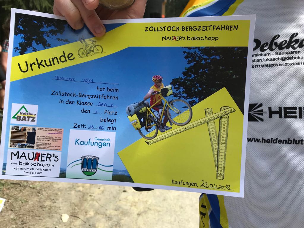 Am So, 29.04. fand wieder das allseits beliebte Bergzeitfahren im Kaufunger Wald statt. Da galt es eine 4,4 km lange Strecke möglichst schnell vom Parkplatz Wolfsberg in Kaufungen zum Zollstock hoch zu fahren.
