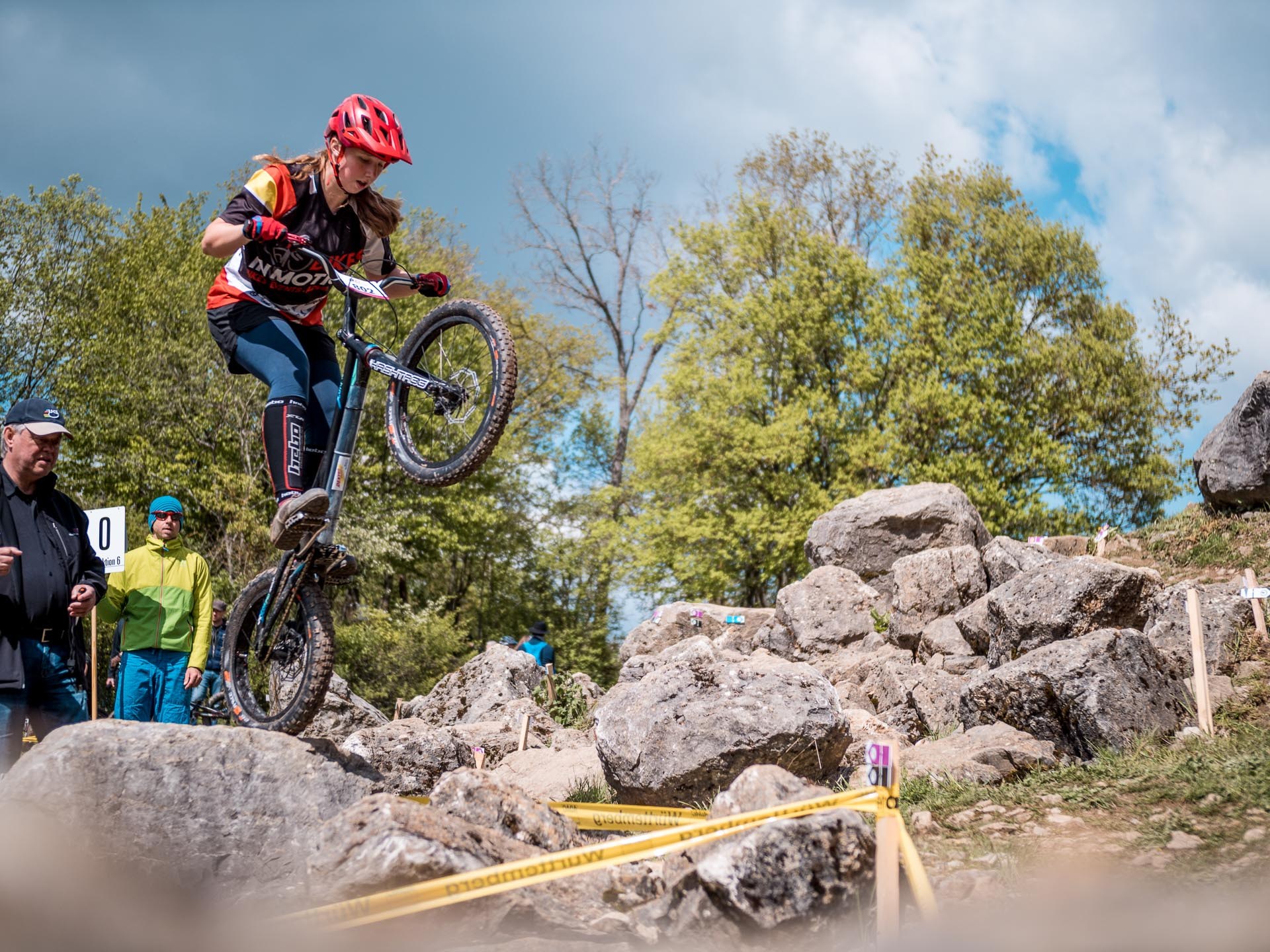 Am 12. Mai fanden in Sulz die Qualifikationsläufe der Deutschen Meisterschaft 20“ statt. Vom TSV Heiligenrode sind Marc Schröder und Celina Römmelt an den Start gegangen. Manuel Schröder, der 2018 in der Kategorie Masters den dritten Platz belegte, fiel gesundheitsbedingt kurzfristig aus. Das Gelände dort ist groß, sehr hügelig und besteht zum größten Teil aus Natursteinen. Marc ging in der Elite Klasse an den Start und kämpfte dort in den schwierigen Sektionen um jeden Punkt. Am Ende war er mit dem 6. Platz zufrieden. Mittlerweile ist Marc mehr auf dem Enduro Rad unterwegs, allerdings lief das Training auf dem 20“ Trial Fahrrad so gut, dass er dieses Jahr auch noch bei ein/ zwei Worldcups an den Start gehen möchte. Celina startete in der Klasse Damen wo sie einen konstant guten Wettkampf gefahren ist und sich als Dritte für das Finale in Berlin im August qualifizieren konnte. Außerdem belegte sie in der Mannschaftswertung den 4. Platz, ganz knapp und punktgleich mit Platz 3. Das Wetter bereitete am Abend vor dem Wettkampftag zwar große Sorgen mit starkem Regen und Gewitter, aber am Sonntag spielte das Wetter zum Glück mit und die Sonne kam raus. Insgesamt war es ein toller Wettkampf in Sulz und ein erfolgreiches Wochenende für unsere TSV Trialer.