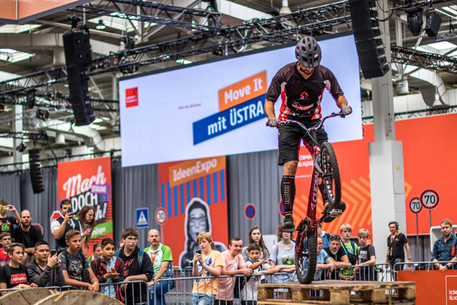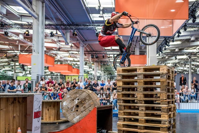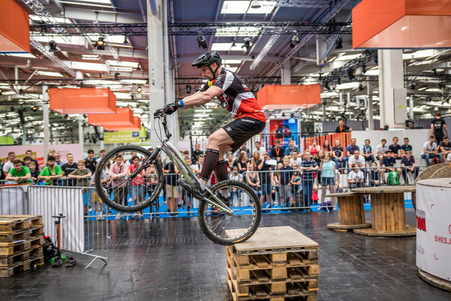 Der Trialsport sorgte mit seiner atemberaubenden Radbeherrschung bei Zuschauern und der Messeleitung für Staunen.