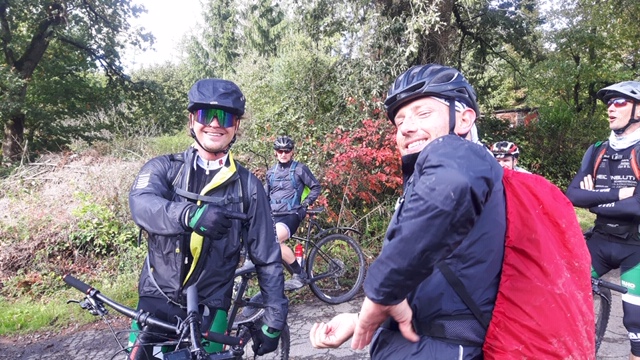 Nachdem alle gut gestärkt und einigermaßen getrocknet waren, ging es trailig hinab nach Eschenstruth, dann – auch schön trailig, aber leider mal wieder bergauf - über St. Ottilien, den P 22 entlang zum Sender und dann hinüber zu den allseits beliebten superflowigen Söhretrails.
